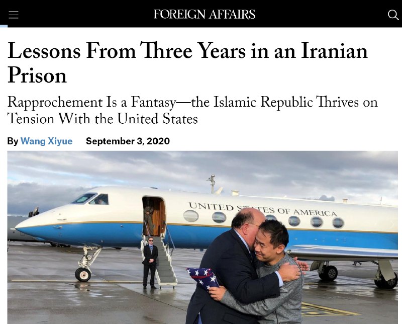 #ژیو_وانگ دانش آموخته دانشگاه پرینستون که از سوی رژیم ایران به گروگان گرفته شده بود و دولت پرزیدنت ترامپ او را به به خانه بازگرداند روز پنجشنبه ۱۳ شهریور در مقالهای در «فارین افرز» نوشت: «آمریکاستیزی، هسته اصلی ایدئولوژی جمهوری اسلامی را تشکیل میدهد که ایران را به عنوان حامی مسلمانان مقابل امپریالیسم آمریکا جلوه دهد. حکومت ایران علاقه ای به آشتی یا عادی سازی روابط با آمریکا ندارد چرا که این اقدام موجب بی اعتبار شدن ماهیت وجودی رژیم میشود. در عین حال تهدید یک دشمن خارجی، سرکوب داخلی رژیم و تلاش برای گسترش نفوذ در سراسر خاورمیانه و فرای آن را توجیه می کند.»