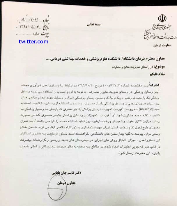 امروز خبر بخشنامهای میآد که اجازه استفاده مجدد از برخی وسایل یکبار مصرف اتاق عمل رو میده