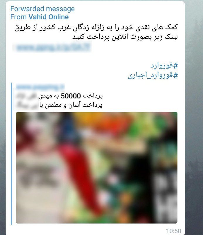 از ربات وحیدآنلاین داره تبلیغ واریز کمک مالی به زلزلهزدهها ارسال میشه برای کاربران تلگرام. نمیدونم خودش در جریانه یا نه