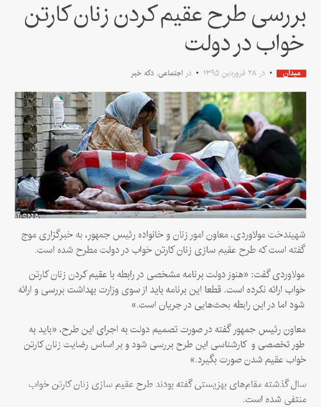 "معاون زنان و خانواده رئیس جمهور @.mowlaverdi از بررسی طرح عقیم سازی زنان کارتن خواب خبر داد medn.me/csdjc