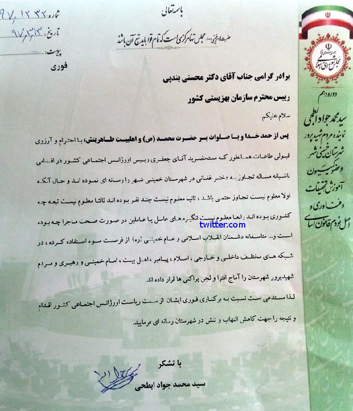 فردا یک نامه دیگه خطاب به وزیر رفاه میبینیم با مضمون درخواست برکناری رییس سازمان بهزیستی بخاطر اینکه گند قضیه در اومده!