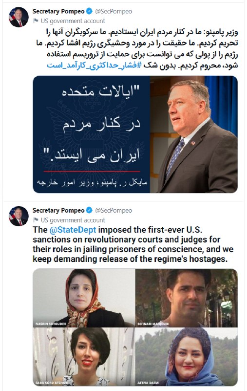 توییت فارسی مایک #پمپئو: SecPompeo